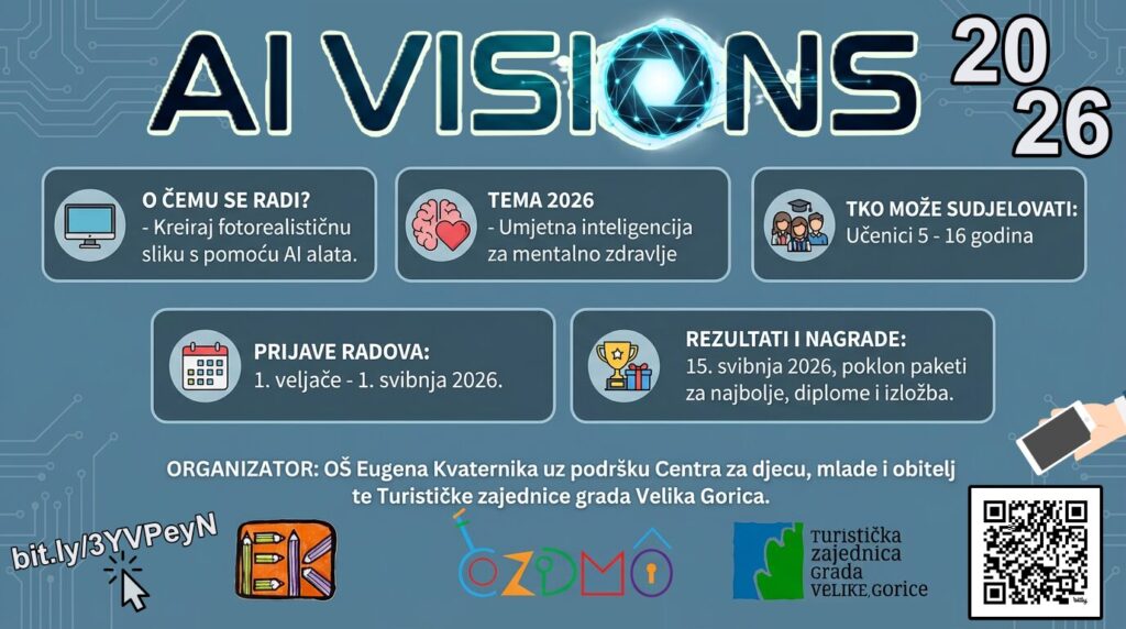 S velikim ponosom objavljujemo da naša škola pokreće “AI VISIONS” – međunarodni natječaj koji spaja umjetnu inteligenciju, umjetnost i važne životne teme.